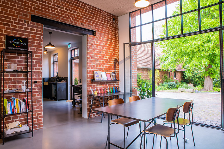 Das Team von Future+You arbeitet auf einem alten Anwesen aus dem 18. Jahrhundert mit High-Speed Internet mitten im Grün. Besuchen Sie uns. Wir machen den besten Kaffee der Welt.